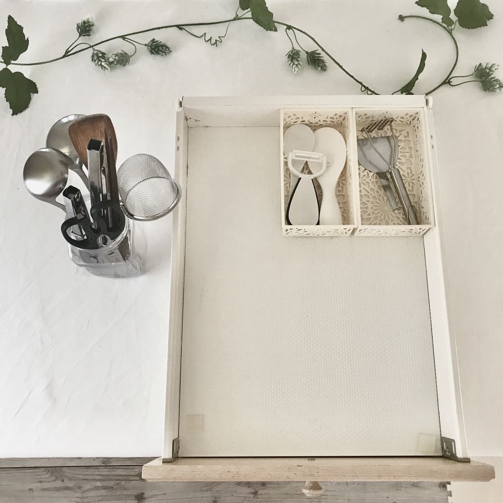 固定概念でキッチンツールは収納ケースに入れるモノだ!と何の疑いもなく思っていました。