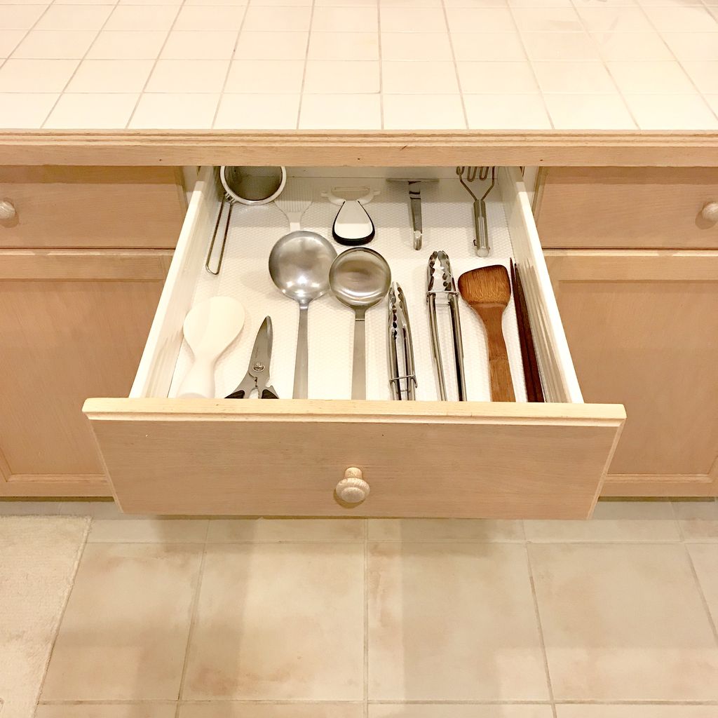 ケースに入れないと、引出しの中がバラバラになってしまうイメージがありますがすべらないシートを敷くことで、引出しの開閉の時にモノがズレることなくキレイを保つ事ができます。