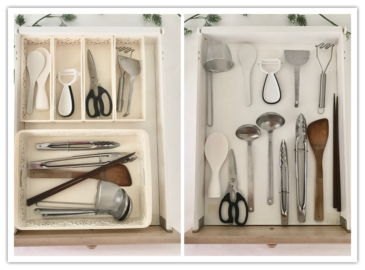 今回は、キッチンツールを3パターンで収納した時、どのような違いがあるのかを比較してみます。