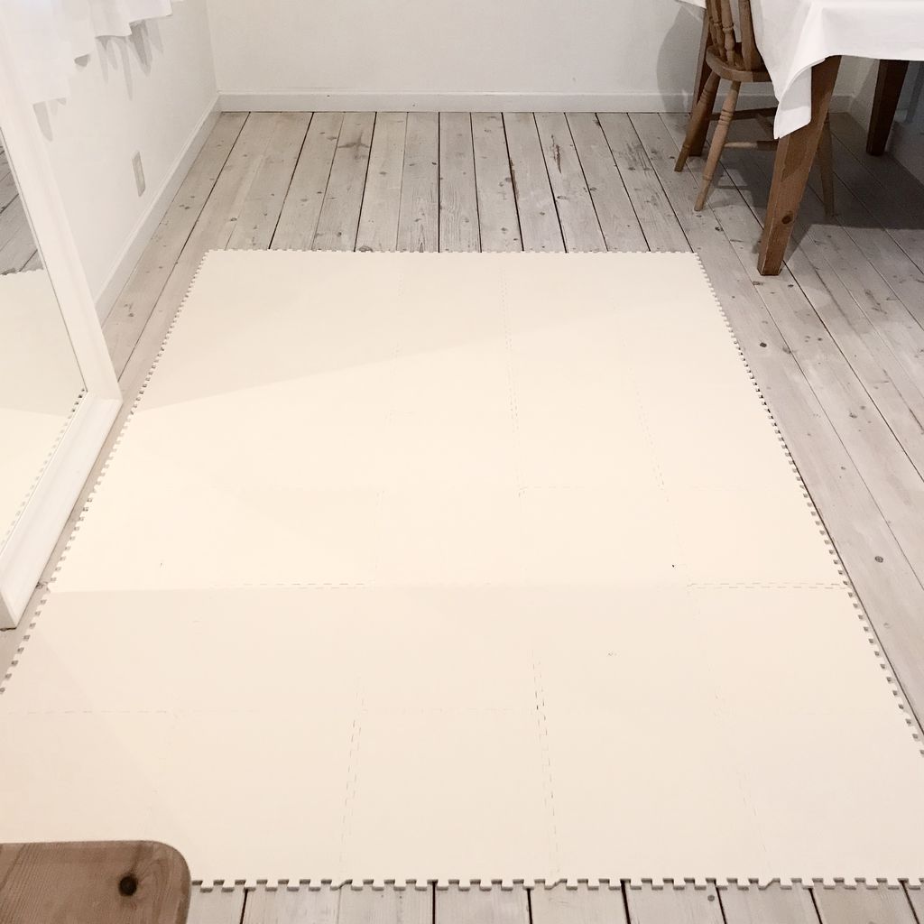 ジョイントマットの上でストレッチをしています。
